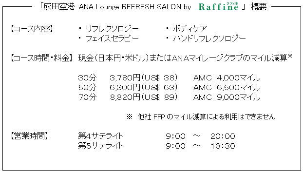 成田空港 ANA Lounge REFRESH SALON オープン 〜 搭乗前にリフレッシュ! 〜 〜 AMCマイル・現金(日本円・米ドル)でご利用いただけます 〜 |