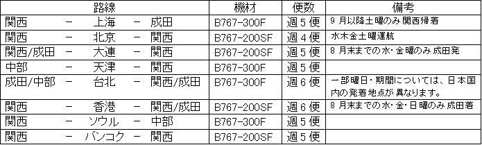 国際線貨物基本ネットワークを構築し、貨物郵便事業を拡大 〜中国・アジア主要路線に集約し、関西発着貨物便を増便〜 |