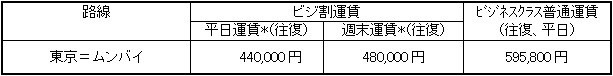 平日運賃:日本発 火〜金、海外発 日〜木 週末運賃:日本発 土〜月、海外発 金・土 |