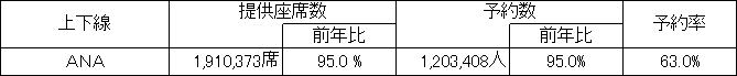 国内線は、約120万人(前年比:95.0%)のお客様からご予約をいただいています。 下期以降、景気低迷の影響を受けておりますが、日並びが良いこともあり、予約率は前年と同様の状況です。