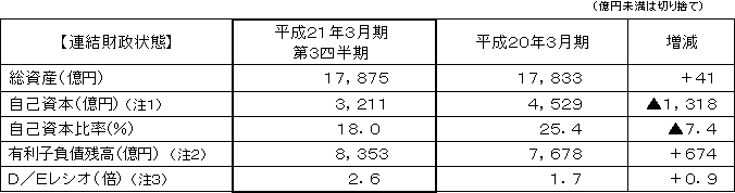 | これらの結果、当期の連結経営成績は、営業利益が403億円、経常利益は227億円、当期純利益は94億円となりました。 |