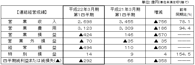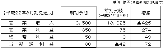 | なお、新型インフルエンザの発生等による需要減退がもたらした減収が通期損益に与える影響を最小限に抑えるべく、第2四半期以降に「09年度緊急収支改善策」を展開してまいります。 |