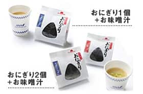 おにぎり1個+お味噌汁 300円(税込) おにぎり2個+お味噌汁 500円(税込) |