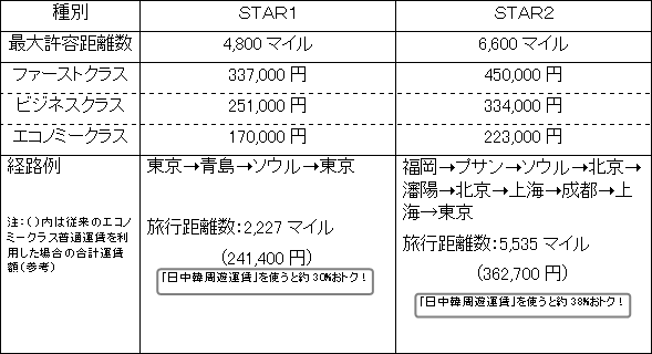 『スターアライアンス・日中韓周遊運賃』の概要