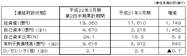 | 各種増収、コスト削減施策に努めましたが、需要低迷、単価の下落を補うことには至らず、当期の連結経営成績は、営業損失が282億円、経常損失は415億円、四半期純損失は253億円となりました。 |
