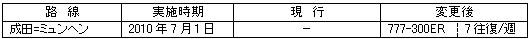 3月28日(日)からの成田空港発着枠増加を受け、新規路線の開設ならびに曜日運航路線のデイリー化を図ります。欧米路線については、7月1日(木)より、成田=ミュンヘン線を開設します。アジア路線についてはホーチミン線を増便、中国路線については、需給動向に応じて成田=瀋陽線、成田=杭州線の増便、成田=青島線の機材大型化を行います。 |