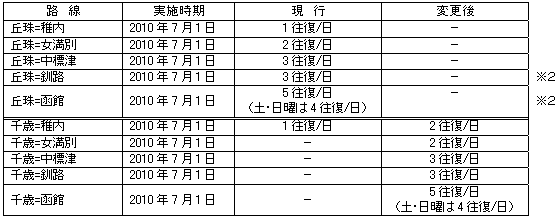 上記北海道内路線の再編に伴い、一部小型機路線の便数・機種を調整し、更なる需給適合を図ります。昨年度に引き続き、季節波動が大きい路線については、季節運航・季節増便を積極的に計画し、需要の取り込みを図ります。 |
