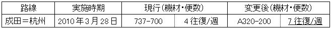 | 1.成田=杭州線の増便見送り | ||||||||