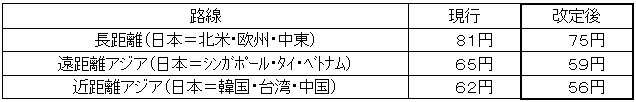 | ANAグループは、本日2010年6月14日(月)、国際線貨物における「燃油特別付加運賃」(いわゆる燃油サーチャージ)の運賃額改定を国土交通省に申請いたしました。 当社グループでは、昨年4月から燃油特別付加運賃額を、航空燃料市況価格に基づき、毎月見直すこととしておりますが、2010年5月1日(土)から2010年5月31日(月)の同価格の1カ月平均は1バレル当たり88.26米ドルに達しておりますので改定することといたしました。 当社グループは、従来同様、様々な費用削減努力や増収努力を講じておりますが、こうした状況を踏まえ、国際線貨物ご利用のお客様に、引き続きご負担をお願いせざるを得ないと判断し、燃油特別付加運賃額の改定を行うことといたしました。何卒、ご理解のほど宜しくお願い申し上げます。 |