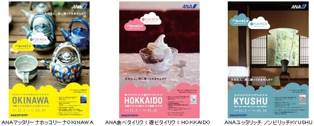 | ANAは、2010年11月より、沖縄、北海道、九州への旅行キャンペーンを実施いたします。毎年ご好評いただいております沖縄・石垣・宮古の魅力を満載した「ANAマッタリ〜ナ ホッコリ〜ナOKINAWA」キャンペーン、冬ならではの北海道をお楽しみいただける「ANA食ベタイリク! 遊ビタイリク!HOKKAIDO」キャンペーン、九州の各県ごとにさまざまなグルメや温泉に出会える「ANAユッタリッチ ノンビリッチKYUSHU」キャンペーンを実施いたします。 ANAスカイホリデー、およびキャンペーン参加旅行会社の対象ツアーでご参加のお客様には、ANAが厳選したメニューの中からお気に入りの一つをお選びいただけるANAクーポンBOOK「旅の付録」や、キャンペーンバスの運行(石垣島・宮古島・旭山動物園)など、沖縄・北海道・九州を満喫いただけるアイテムを厳選してご用意いたしました。 また、今年は「誘う」をキーワードに店頭ポスターやANA SKY WEBでの展開のほか、マガジンハウス社とのタイアップ企画として「Hanako(9/22号)」、「Hanako FOR MEN(9/24号)」誌面に記事を掲載するなど、沖縄・北海道・九州の魅力を積極的にアピールしてまいります。この秋冬は、ぜひANAのキャンペーンにご注目ください!