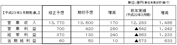 堅調な需要推移により、世界的な景気後退と新型インフルエンザの影響を受けた前年同期と比較して、航空運送事業で大幅な増収となりました。 |