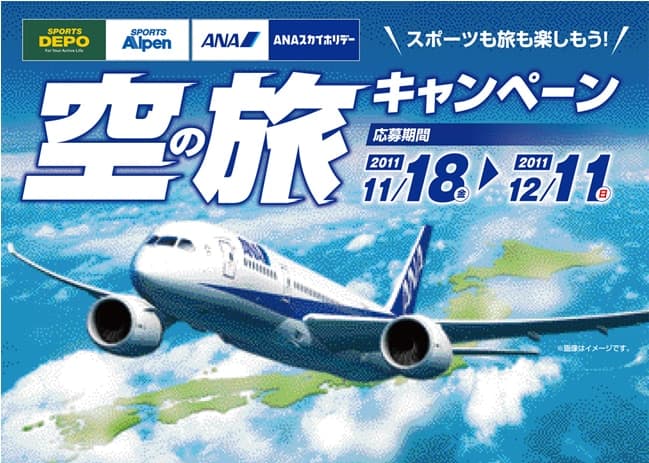 株式会社アルペン(本社:愛知県名古屋市、代表取締役社長:水野泰三、以下「アルペン」)と、全日本空輸株式会社(本社:東京都港区、代表取締役社長:伊東信一郎、以下「ANA」)、ならびにANAセールス株式会社(本社:東京都港区、代表取締役社長 稲岡研士、 以下「ASX」)の3社は、冬季における相互の需要喚起策の一環として、全国で展開するスポーツデポ・アルペンの全店において、“スポーツデポ・アルペン×ANA「空の旅」キャンペーン”を実施いたします。 |