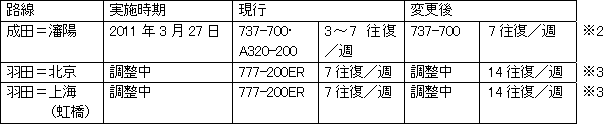 日中航空交渉の合意後に羽田=北京、上海線の増便を計画します。また、ボーイング767-300ERの増機に伴い、成田=北京、台北(桃園)線の大型化を実施する等、中国、アジア路線の増便、機種変更による一層の利便性向上を図ります。 |