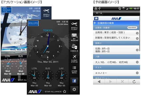 ANAは、本日3月10日(木)より、国際線の新たなサービスとして、スマートフォン(iPhone、Android)用の「ANA GLOBAL」アプリケーション(無料)を提供開始いたしました。 今回提供を開始した「ANA GLOBAL」アプリケーションは、日本語・英語の2言語に対応しており、国際線の予約・決済、チェックイン、運航状況の確認をいつでも、どこでも実施できるアプリケーションです。また、ANAマイレージクラブお客様番号をご登録いただくことで、ホーム画面にお客様のマイル数及びカードステータスが表示されるなど、お客様の利便性も向上いたします。 さらに、ANA便就航地などから4都市を自由に選び、その都市の時刻を表示する世界時計機能で、グローバルに活躍するビジネスパーソン、世界各地の仲間を身近に感じたい方々をサポートいたします。壁紙には、ANAが世界に先駆けて導入するボーイング787型機や日本などをテーマにしたものを4種類ご用意いたしました。また、本年1月よりサービスを開始しておりますFacebook®のANAファンページへは、ホーム画面からワンタッチで簡単にアクセスが可能となります。 ANAのGLOBALアプリケーションでより世界を身近に。今後ともANAの国際線に是非ご期待ください。
