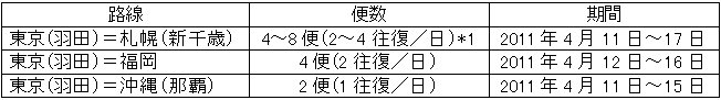 | ANAグループでは、東日本大震災後の需要動向に対応し、東北地方への臨時便の設定や機材の小型化による定期便維持に努めて参りましたが、本日4月7日(木)、国内線定期便の一部を欠航させていただくことを決定いたしました。欠航の対象便をご予約のお客様には大変ご迷惑をお掛けいたしますが、何卒ご理解を御願い致します。 | |||||||