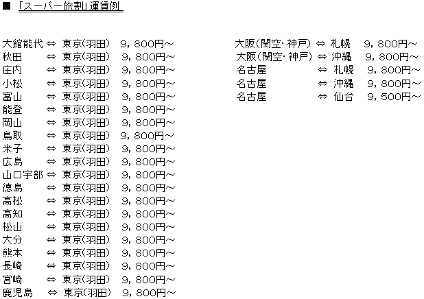 2011年10月〜12月搭乗分の「旅割」、「スーパー旅割」を設定 |