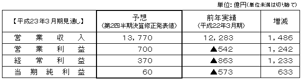これらの結果、当期の連結経営成績は、営業収入が10,391億円、営業利益が777億円、経常利益は583億円、四半期純利益は375億円と大幅な増収増益となりました。 |