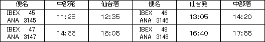 アイベックスエアラインズ株式会社(以下IBEX)と全日本空輸株式会社(以下ANA)は、IBEXが2011年7月1日(金)より就航する、名古屋(中部)=仙台(1日2往復4便)、名古屋(中部)=大分線(1日2往復4便)においてコードシェア(共同運航)を行うことで合意し、本日1月24日(月)、国土交通省に申請致しました。 |