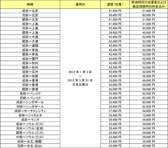 | ・ 設定期間 2012年1月3日(火)〜 2012年3月31日(土)日本出発分 |