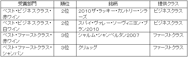 | ANA国際線機内で提供されるワインが、英国のビジネストラベラー誌が運営する「2011年セラーズ・イン・ザ・スカイ」表彰において、4部門で入賞。2月6日に、ロンドンで受賞式典が行われました。なお、本年は33の航空会社から合計で約250本がエントリーされております。ANAは、昨年に引き続き、2年連続の入賞となりました。 今回受賞したワインの銘柄と受賞部門は以下の通りです。 ![]() ANAが機内で提供するワインは、毎年約半年間かけ、1500〜2000本もの銘柄の中から選定されます。2012年3月からリニューアルされるワインは、1次選考にエントリーされた1859銘柄の中から書類選考で絞った258銘柄を、さらにブラインド・テイスティングによって選定しています。 ANAでは、アジアを代表するエアラインになるという経営ビジョンのもと、これからも世界のお客様に「夢」と「感動」をお届けするサービスで、高品質な空の旅を提供すべく努めてまいります。 ![]() 【2011年セラーズインザスカイで受賞を受けたワイン】 ビジネストラベラー誌について ビジネストラベラー誌(英語名Business Traveller)(www.businesstraveller.com/)は、1976年に英国で創立され、現在では世界10カ所(英国、米国、アジアパシフィック、中東、中国、ドイツ、デンマーク、ハンガリー、アフリカ、ポーランド)それぞれで出版・発行をしている、消費者向け雑誌です。 今回の「セラーズ・イン・ザ・スカイ」(Cellars in the Sky)は、1985年から始まったビジネストラベラー社主催の機内ワイン表彰制度で、エントリーのあったエアラインの機内提供ワインに対し、複数の著名人によるブラインド・テイスティングによって評価を行い、1年に1回表彰を行うものです。 |