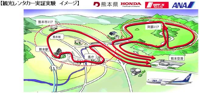 ANAは2012年9月より、熊本県・ニッポンレンタカーサービス株式会社(以下ニッポンレンタカー)・本田技研工業株式会社(以下Honda)と共同で、阿蘇くまもと空港を起点に阿蘇地区を中心とする熊本県内において実施される電気自動車(EV)およびプラグインハイブリッド車(PHV)を使った観光レンタカーの実証実験に参画いたします。