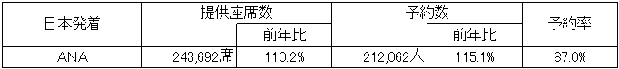 2012年度お盆期間(2012年8月10日(金)〜2012年8月19日(日))のANAグル−プのご予約状況を取り纏めましたので、ご報告致します。 |