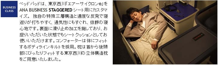 | 4.日本の新しい、安らぎのかたち。長時間フライトの寝具を一新します。 |