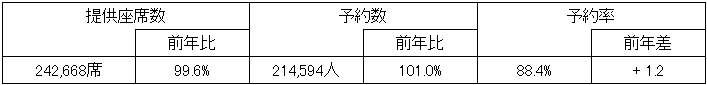 2013年度お盆期間(2013年8月9日(金)〜2013年8月18日(日))のご予約状況を取り纏めましたので、ご報告致します。 |