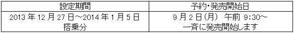 2013年12月27(金)〜2014年1月5日(日)搭乗分 |