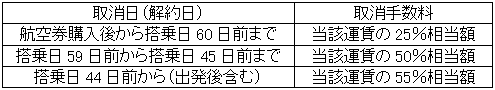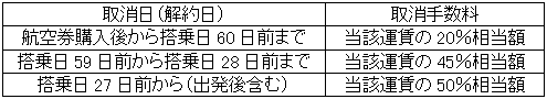 航空券購入後の取り消しに際しては、次の取消手数料が必要です。