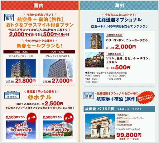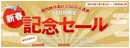 ANAセールス株式会社(代表取締役社長 志岐隆史 本社東京都港区)は、ANAの国内ダイナミックパッケージ「旅作(たびさく)」が2006年6月の販売開始以来、ご利用者数が250万人を突破しました。その記念として、「国内旅作累計250万人達成記念セール」を本日より1月20日(月)までの期間で実施し、ANAマイレージが2,000マイル付きのプランや、国内のシティホテルで1室2,500円の宿泊を設定するほか、海外でも500円での往路送迎オプショナルなどをご用意します。 「旅作」は、インターネット上で航空機とホテルを自在に組み合わせてオリジナルのパッケージツアー(募集型企画旅行)を作り、24時間いつでも予約・決済できるものです。当社では、国内旅行のダイナミックパッケージを2006年6月より発売開始し、その利便性を多くのお客様にご愛顧いただいております。今後ますます多様化するニーズに応えるべく、ANAのダイナミックパッケージ「旅作」では、ユーザビリティの向上を図ります。