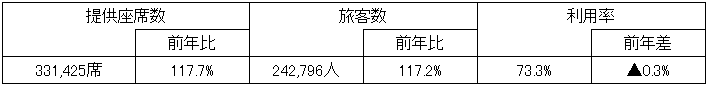 | 【国内線】 ・昨年に比べ連休が少なく日並びが悪い中、バリエーションを拡大した「旅割」運賃を 中心にプレジャー需要が好調に推移し、旅客数は前年を0.8%上回りました。 ・方面別では、沖縄方面・九州方面が好調でした。 ・期間中のピーク日は、以下の通りでした。 下り便 : 5月2日(金)・3日(土) 上り便 : 5月5日(月)・6日(火) 【国際線】 ・羽田空港を中心とした路線拡大により、搭乗旅客数は前年を17.2%上回りました。 ・連休が短い日並びであることから、短距離路線が好調でした。 ・アジア・リゾート路線、なかでもベトナム・フィリピン・タイ・台湾が好調でした。 ・期間中のピーク日は、以下の通りでした。 日本発 : 4月26日(土)・27日(日)・5月3日(土) 日本着 : 4月30日(水)・5月5日(月)・6日(火) |
