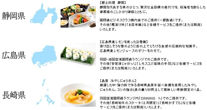 | 【機内・空港ラウンジでご提供する各県の特産品を使った食事・デザートの一例】 | |||||||