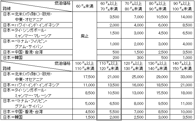 ANAグループ(※)は、本日2014年8月13日(水)、2014年10月1日(水)以降の航空券発券分に適用となる国際線旅客「燃油特別付加運賃(いわゆる燃油サーチャージ)」の改定を国土交通省に申請いたしました。(※)ANA、AJX(エアージャパン) |