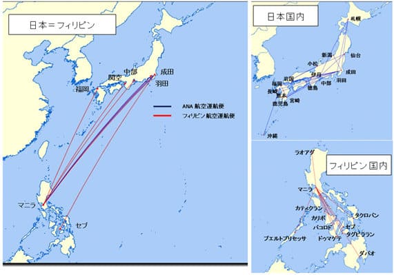 ANA(代表取締役社長 篠辺修)とフィリピン航空(会長兼最高経営責任者 ルシオ・タン)は二社間提携に合意し、以下の通り、コードシェア、スルーチェックイン、マイレージ提携を行ってまいります。 |