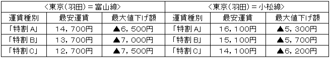 ANAは本日、2015年3月14日(土)~3月28日(土)搭乗分の「特割」、「旅割」各種運賃の一部変更について、国土交通省に届出を行いました。 |
