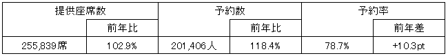 | 【国内線】 ・5月の5連休を中心に、旅割運賃などのプレジャー需要が好調に推移しており、予約数は 前年を大きく上回っております。 ・全方面で前年を上回っておりますが、特に沖縄方面の予約率が好調です。 ・期間中のピーク日は、以下の通りです。 下り便 : 5月2日(土) 上り便 : 5月6日(水) 【国際線】 ・全方面で前年を上回るご予約をいただいており大変好調です。 ・長期で連休が取得できる日並びから欧米・リゾート方面が人気であることに加えて、 5月の5連休を中心に、アジア・中国方面などの短・中距離路線も好調に推移しております。 ・また海外発需要では、訪日需要が旺盛なアジア路線や中国路線が大変好調です。 ・期間中のピーク日は、以下の通りです。 日本発 : 4月29日(水)・5月1日(金)・2日(土) 日本着 : 5月5日(火)・6日(水) 日程・便によってはまだ空席もございます。是非ご利用ください。 |