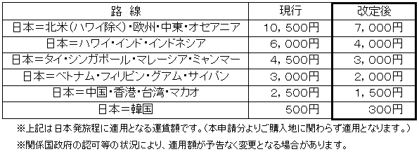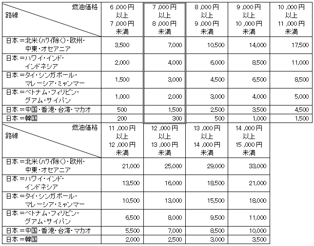 ANAグループ(※)は、本日2015年10月19日(月)、2015年12月1日(火)以降の航空券発券分に適用となる国際線旅客「燃油特別付加運賃(いわゆる燃油サーチャージ)」の改定を国土交通省に申請いたしました。(※)ANA、AJX(エアージャパン) |