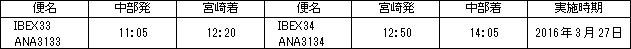 アイベックスエアラインズ株式会社(以下IBEX)と全日本空輸株式会社(以下ANA)は、IBEXが3月27日(日)から始まる2016サマーダイヤにおいて開設する中部=宮崎線においてコードシェア(共同運航)を行うことで合意し、本日、国土交通省に申請・届出を行いました。 1. 運航計画・ダイヤ