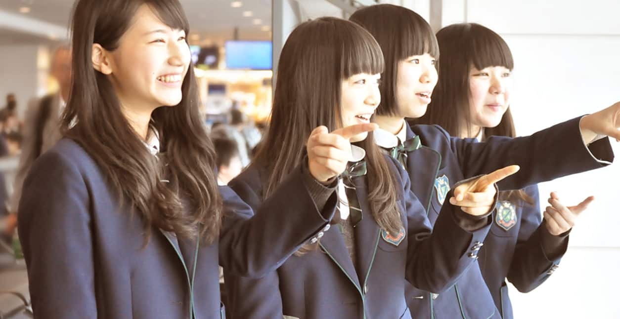 • 青空から始まる修学旅行を、ANAで ANAのひこうき雲で描く、青春の一ページ これから世界を羽ばたく君たちの翼が学び舎になる。