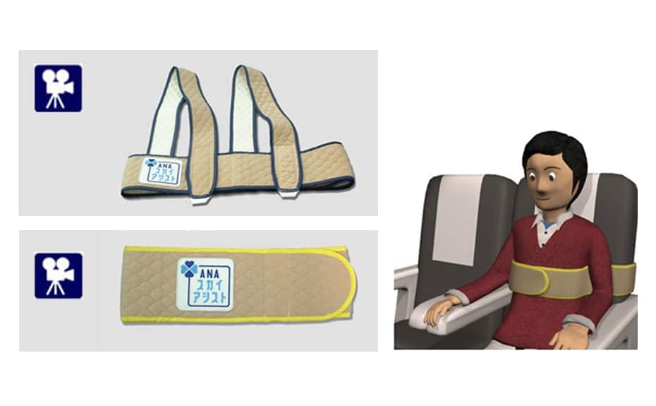 上体を座席に固定するための補助ベルト(サイズ:幅 約12cm、長さ 約150cm)をご用意しています。