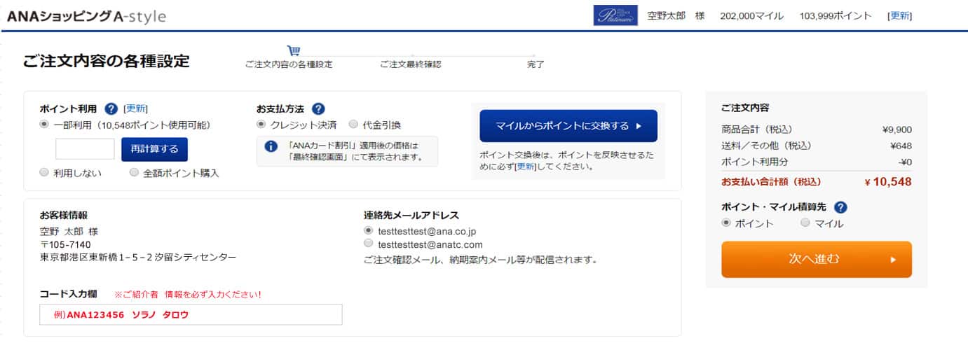 - ※ANAショッピングA-styleで商品をご購入の際、ショッピングポイントとANAカード割引(5%OFF)との併用が可能です。