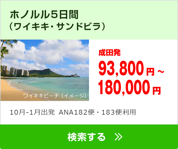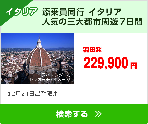 ※掲載の旅行代金は、エコノミークラス/大人お一人様/2名様1部屋利用時の代金となります。