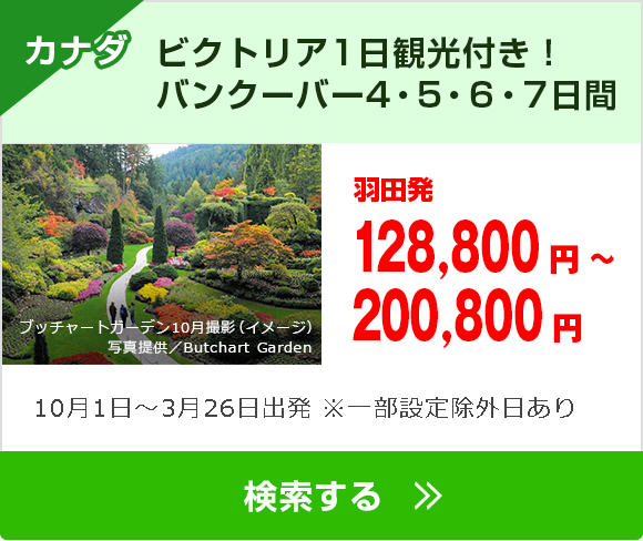※上記は、燃油サーチャージを含んだ旅行代金となります。燃油サーチャージの減額・増額または廃止・新設による旅行代金の変更はありません。