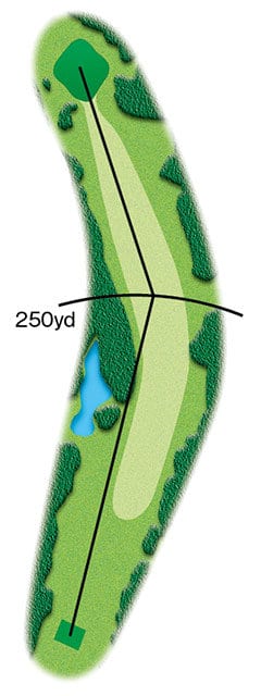 フェアウェイ左の池の奥に、大きな木が張り出している。池越えを狙った際、その木がどう影響するかがスコアを左右する。ほとんどのプロは、フェアウェイ右に立つ木のやや左を狙ってくるだろう。ピンが右に切ってあれば左に。左にきってあれば右にのせていかないと寄りにくいグリーンだ。
