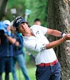 予選2日目。6番の第1打を右の林に曲げた石川遼。木の枝や芝のはげた足下が邪魔をするなか、5番アイアンで低く出し、約30ヤードのスライスをかけて見事にピン右10メートルに運び、ギャラリーのどよめきを生んだ。