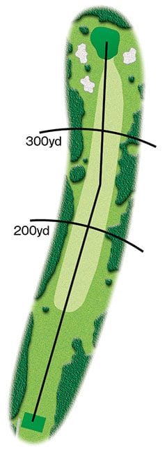 広々としたフェアウェイが一直線にのびている。しかし、275ヤード付近から上り勾配になっているため、ティーショットの飛距離が出ないと、ピンの根本が見えず、セカンドショットの距離感がつかみにくくなる。縦に長いグリーンをオーバーすると低い地点まで落ちてしまい、プロでもそこからグリーンを狙うのは難しい。アゲンストの風が多く、フェアウェイが比較的狭い為、距離と正確性が求められるホールである。