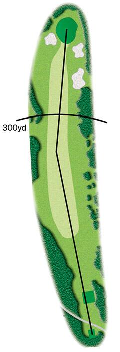 グリーンは左から右へ傾斜している。右サイドから攻めれば、パーセーブが楽になる。しかし、右へ行きすぎると、深いラフにつかまり2打目に苦労する。左からフェードで攻めたい。この2打目のアイアン次第でスコアが決まるだろう。