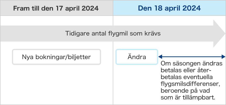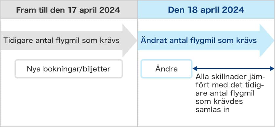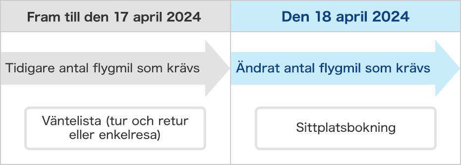 Det reviderade antalet flygmil som krävs gäller för poängbiljetter som köps från och med den 18 april 2024. 0:00 (JST)