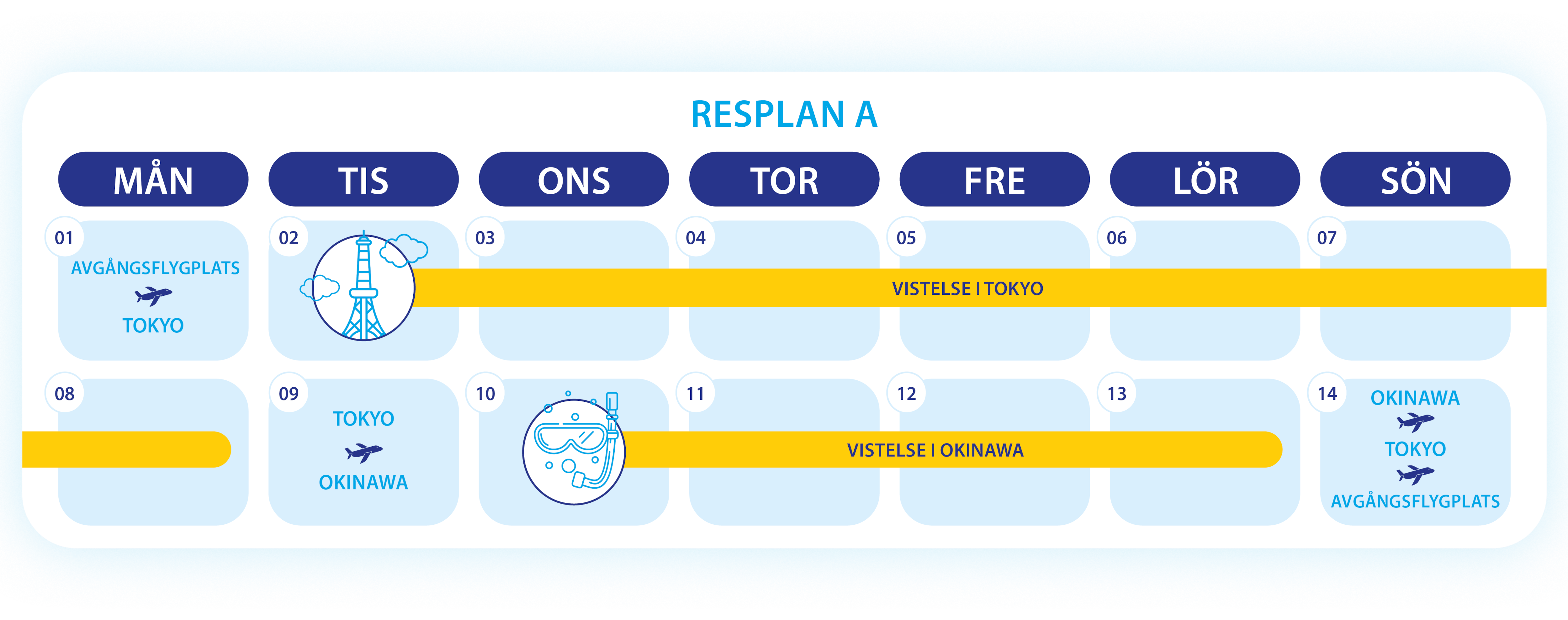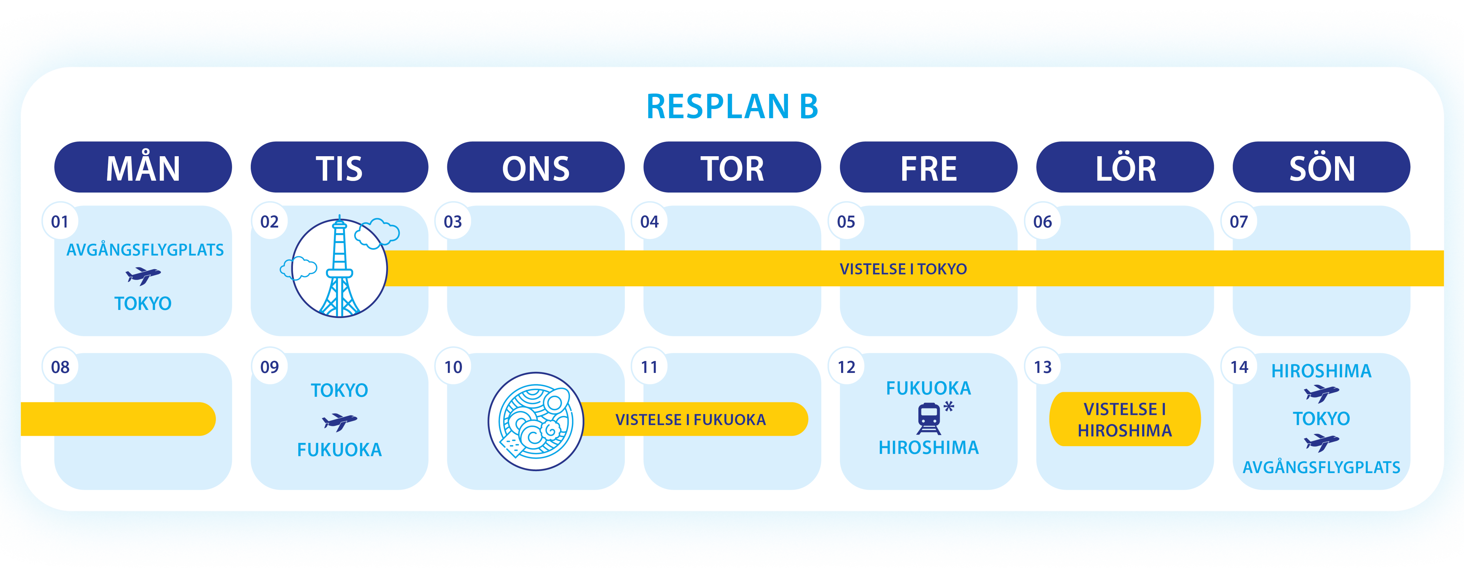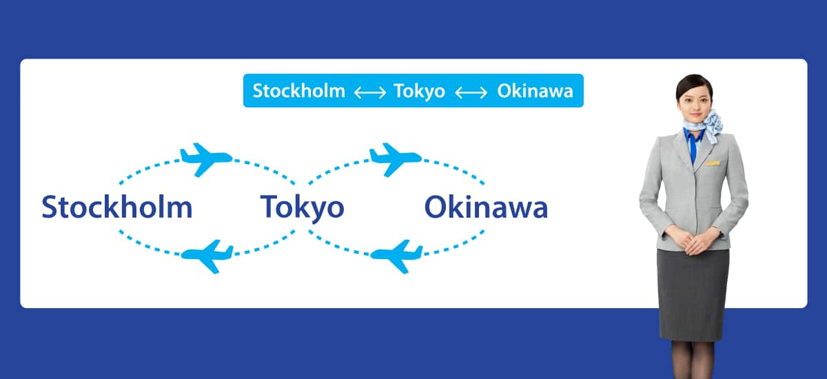 Enligt exemplet ovanför behöver dina kostnadsfria inrikesflyg inte anlända eller avgå från samma flygplats – vilket ger dig möjligheten att skräddarsy din egen resa i Japan!